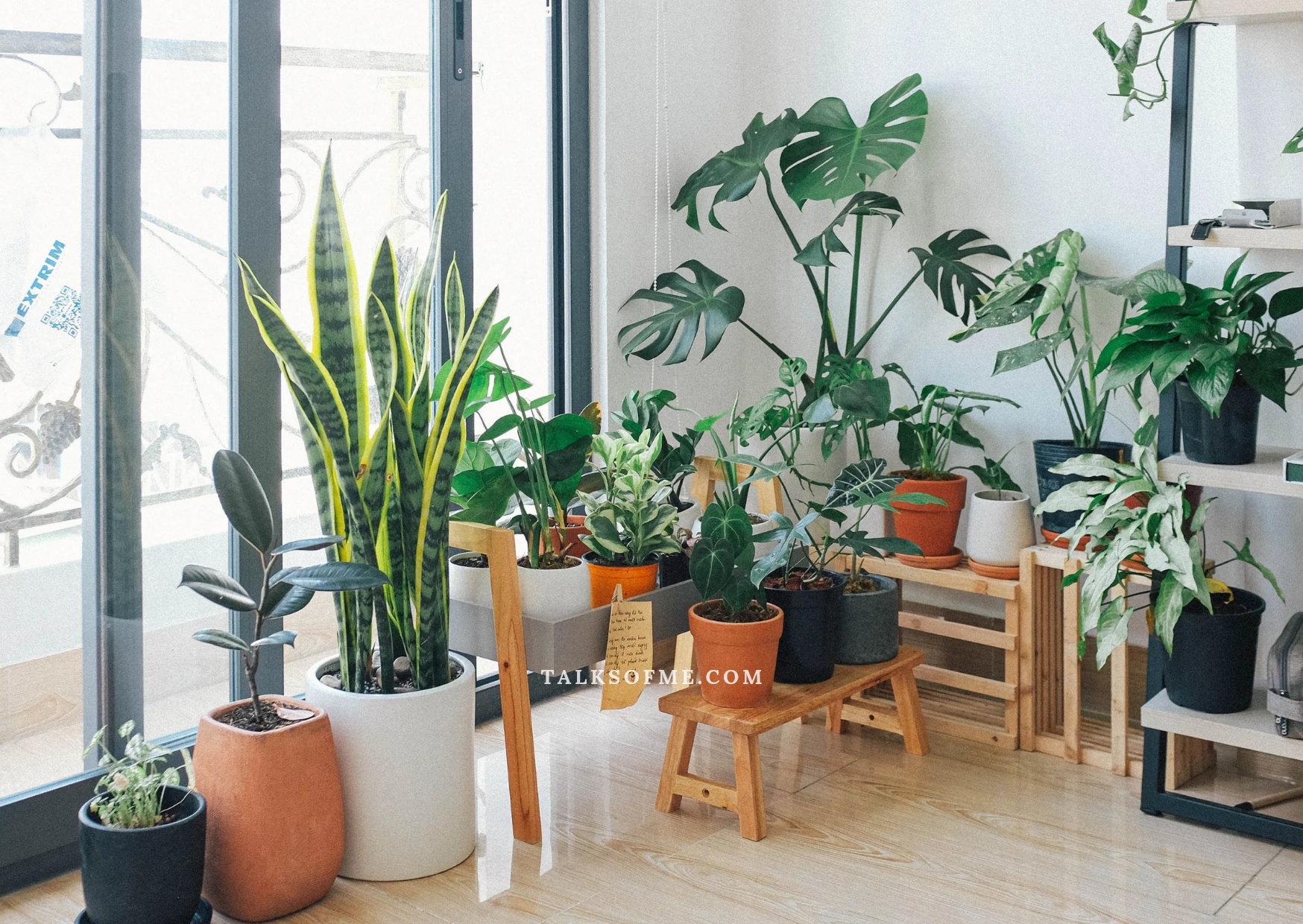 Hang plants from the ceiling or place them on shelves to create a layered effect.